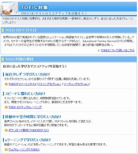 Yahoo!の学習コンテンツが充実している。 より実用的な内容として、TOEIC対策に特化したページがあるので、TOEIC受験を考えている場合にはチェックしておくといい。たとえば「TOEICデイリーミニテスト」のコーナーではPart1〜Part3のリスニング、Part5のリー…