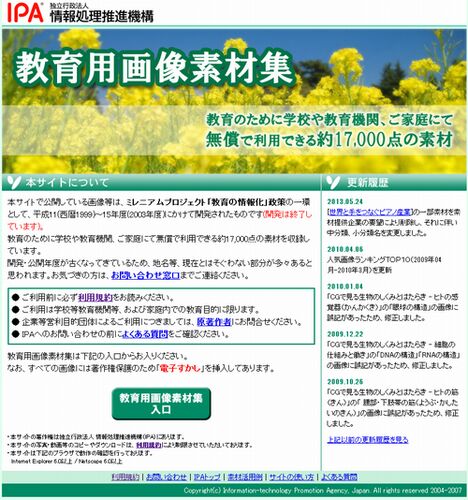 インターネット上には「フリー素材集」と呼ばれるものがたくさんあるけれど、こちらは IPA(独立行政法人 情報処理推進機構)が提供する教育用画像素材集。教育用途で使用することを目的とした素材が実に17,000点も収録されている。 静止画だけではなく、動画…